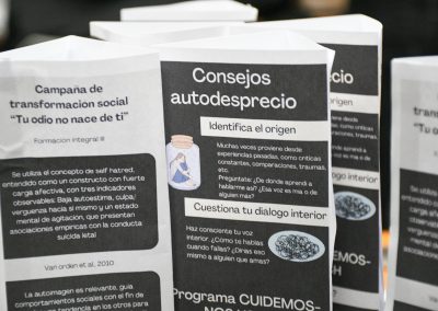 Durante la jornada, cada grupo de estudiantes preparó un stand interactivo, utilizando materiales como afiches, trípticos, fanzines, paneles artísticos y cortos audiovisuales. Las temáticas abordadas surgieron de intereses propios de cada grupo de trabajo y buscaron fomentar el diálogo, la reflexión y la concientización sobre problemáticas sociales que involucran a la psicología. Los asistentes pudieron participar de concursos, dejar comentarios, aportar testimonios y construir materiales colaborativos, lo que permitió una experiencia educativa altamente participativa y dinámica.