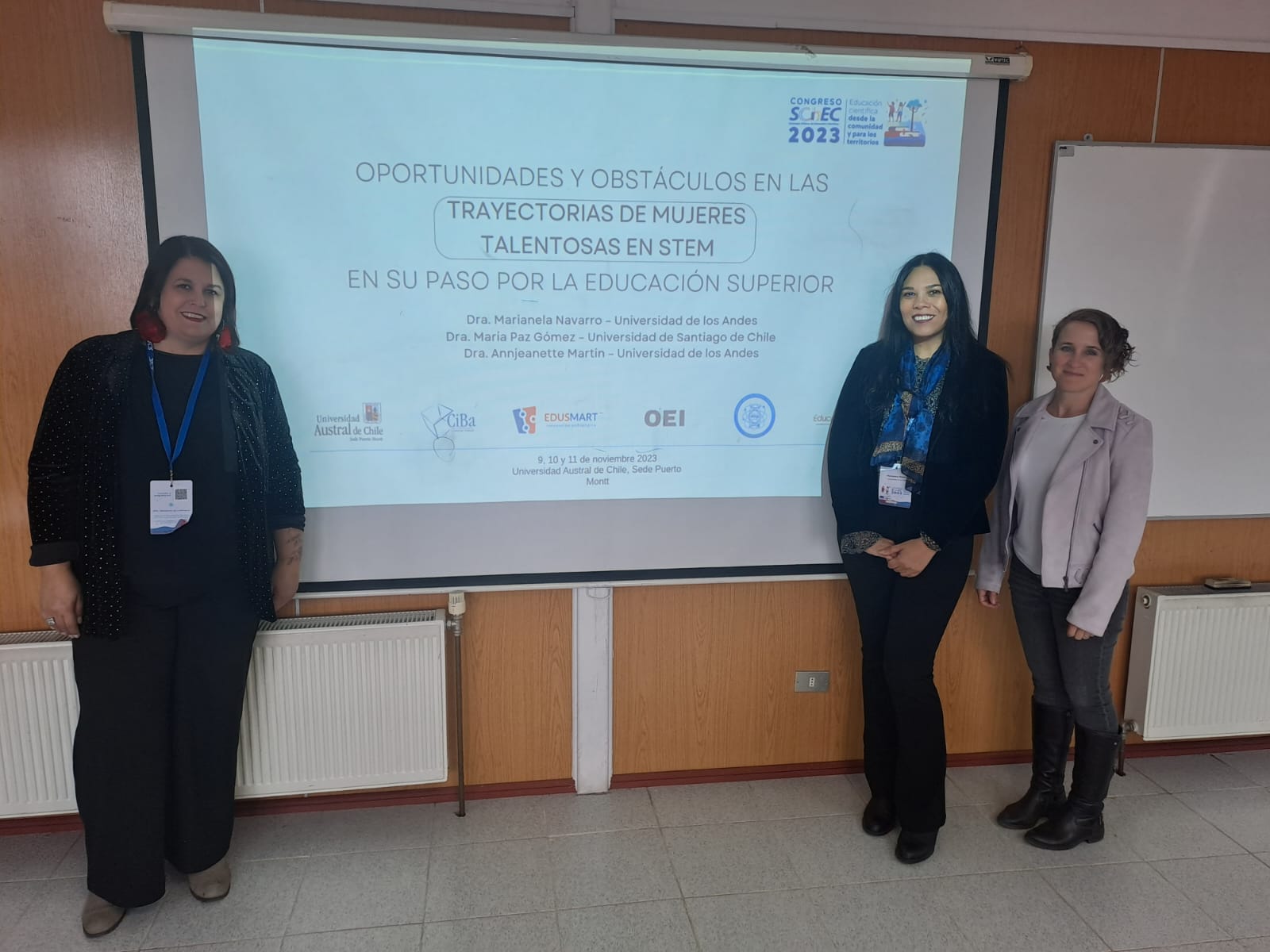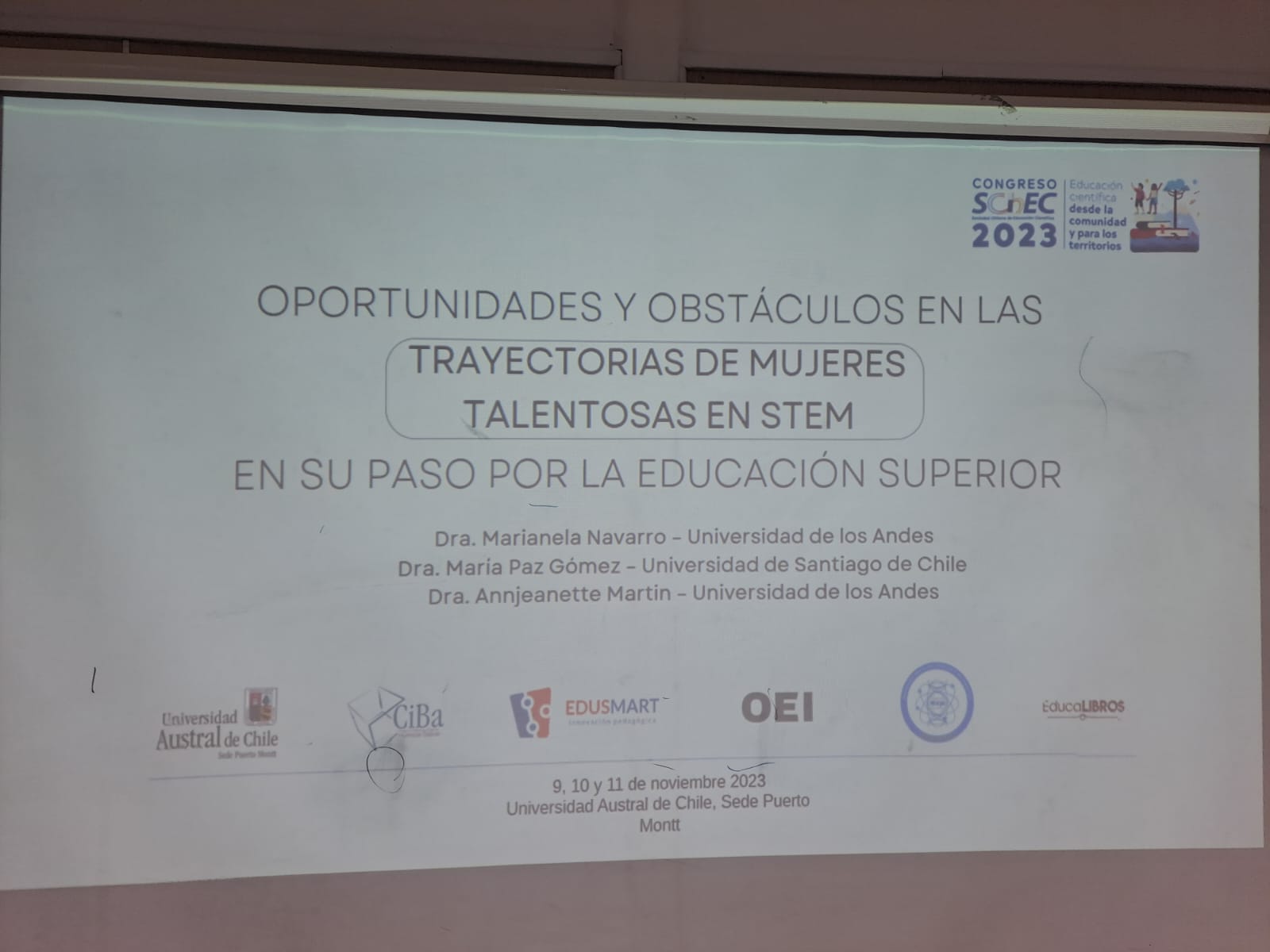 Durante la presentación en la que participó la profesora, Dra. María Paz Gómez, se analizaron en detalle los datos del segundo año del proyecto FONDECYT, centrándose en las experiencias universitarias pasadas de mujeres talentosas que actualmente se destacan en campos STEM.