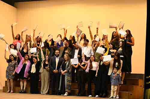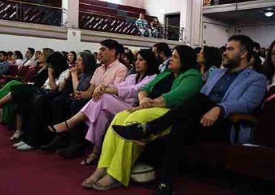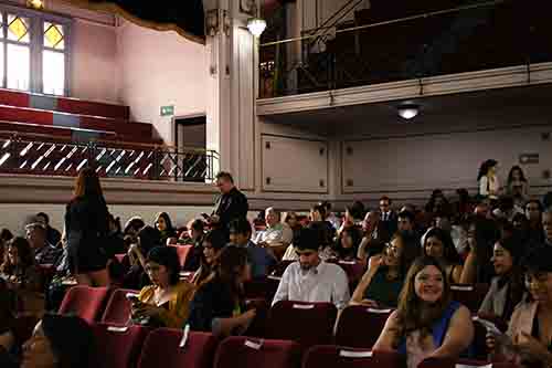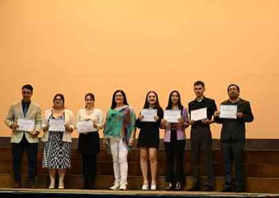 Luego de un breve interludio artístico, subieron al escenario cinco titulados del Magíster en Psicología Educacional del 2021 para recibir sus diplomas, seguidos por los cinco titulados del Doctorado en Psicología, destacando a nuestras profesoras Dra. Johana Cabrera y Dra. María Soledad Loyola.