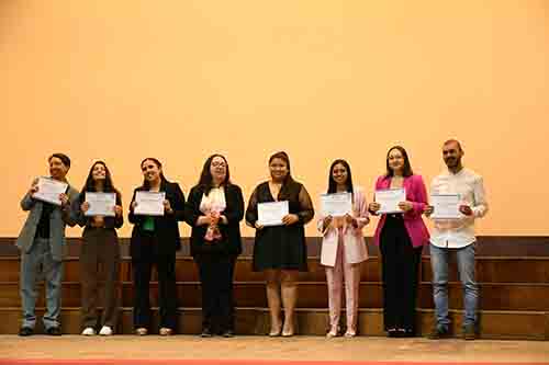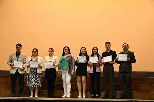 Tras sus discursos, los primeros en recibir sus títulos fueron los 33 egresados de la carrera de Psicología, con mención en Psicología Clínica. Uno a uno, pasaron al escenario para recibir sus diplomas que los certifican como Licenciados en Psicología.