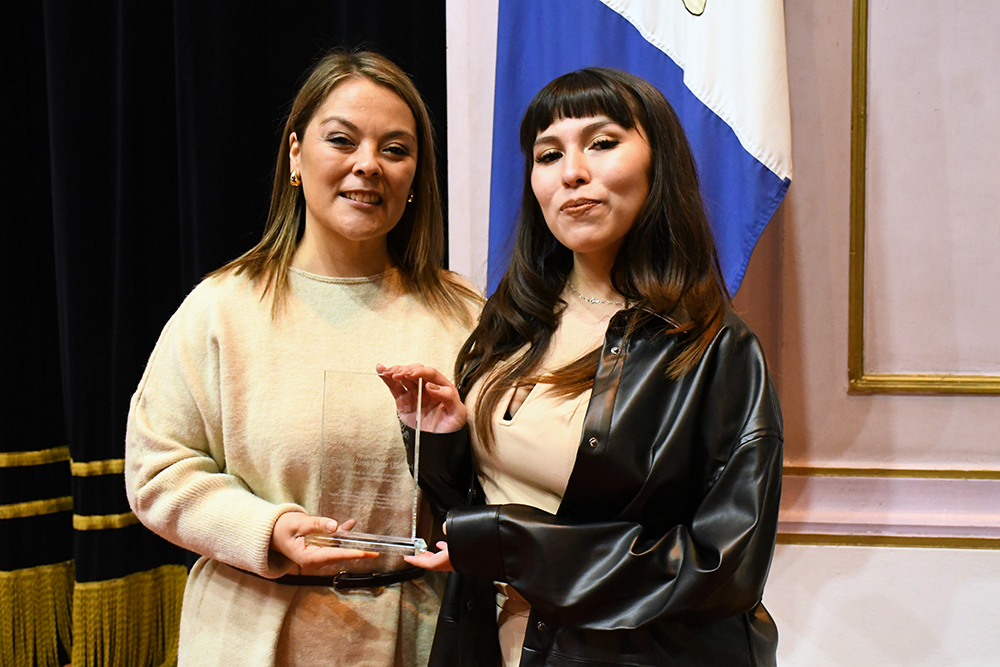 El Premio Alma Mater de la Universidad de Santiago fue entregado a Francisca de las Fuentes Verdugo, quien además pronunció un discurso en representación de los titulados. Francisca expresó su gratitud y destacó la importancia de la implicación social tanto dentro como fuera de la Universidad.