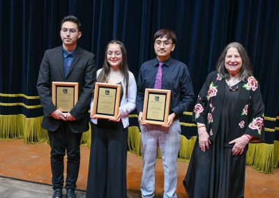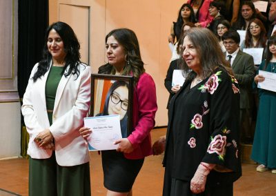 A continuación, se entregaron los diplomas a los titulados del Magíster en Psicología Educacional. En la ceremonia también se reconoció a los mejores estudiantes de cada especialidad. En Psicología Clínica, el reconocimiento fue otorgado a Constanza Dalia Morales Gárate; en Psicología del Trabajo y las Organizaciones, a Víctor Andrés Vargas González; y en Psicología Educacional, a Matthias Antonio Aguirre Silva, quien además fue distinguido como el mejor alumno de su generación.