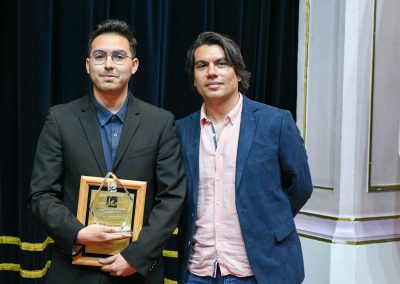 El Premio Alma Mater de la Universidad de Santiago fue otorgado a Nicolás Ignacio Alviña Fuentes, en reconocimiento por representar los valores de la universidad. Al reflexionar sobre su formación en la USACH, Nicolás destacó la “experiencia de aprendizaje constante” que vivió a lo largo de la carrera, enfrentándose a diversos desafíos, como el estallido social y la pandemia. «Uno parte de miradas más tradicionales… pero creo que en el poco andar de la carrera y en la medida que también vamos explorando y experimentando esta experiencia, el mismo estallido, la misma pandemia, uno empieza también a encontrarse en eso», comentó, resaltando cómo la formación en la USACH impulsa a los estudiantes a desarrollar una mirada crítica y reflexiva frente a la psicología y su práctica. Además, animó a los jóvenes a unirse a esta institución: «Lo que tiene de particular la USACH es que te enseña a situarte… la formación no solamente está pensada desde entregar las herramientas técnicas y teóricas, sino que también en otorgar herramientas personales.»
